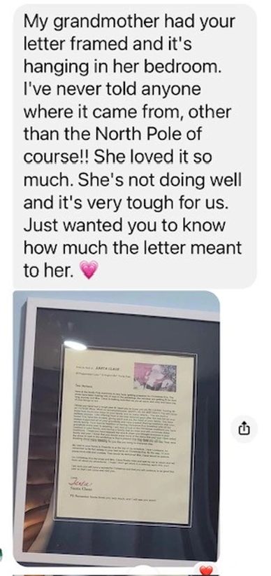 Above is an example of a special request that Santa filled. Letters and calls from Santa are not just for children. Make a friend or a loved ones day. Contact us for more information.